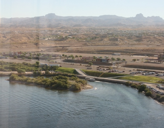 Nous passons la nuit dans un grand hôtel Casino de Laughlin qui essaye d'appâter les joueurs hors de Las Vegas (on n'en est pas loin) avec des tarifs dingues (32 € à 3). Nous n'avons jamais connu pareille chaleur, il fait plus de 40° en fin d'après-midi et le soleil brule la peau. La piscine froide est la bienvenue. Nous sommes au 18ème étage et la vue sur le Colorado est imprenable. Le matin, déjeuner Pantagruélique++ et départ vers Grand Canyon.