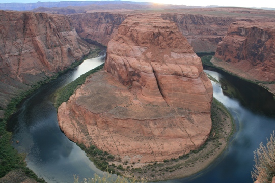 Ce soir, nous allons assister au coucher du soleil sur le Colorado au niveau du Horseshoe. Une simple marche de 20 minutes à 3 miles de Page permet d'atteindre ce splendide fer à cheval. |