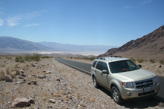 Nous quittons Vegas tôt ce matin pour découvrir le dernier parc de notre voyage : Death Valley situé à 200 km à l'Ouest de la ville. Pour cela, nous entrons en Californie. Nous traversons ce Parc sans y prendre beaucoup de plaisir. C'est un endroit où il fait un peu plus chaud qu'ailleurs mais où il n'y a rien : si, des traces de sels et quelques dunes. On peut s'y arrêter sur la route de San Francisco mais y aller exprès de Vegas présente peu d'intérêt.
