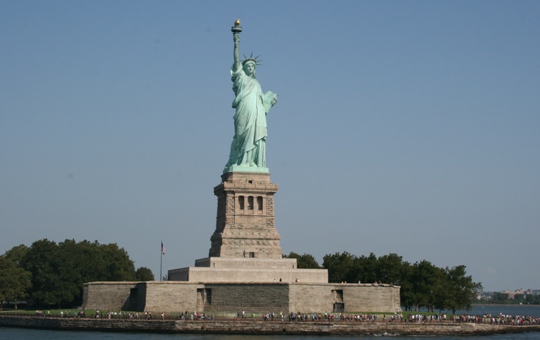 Nous partons tôt en métro pour Manhattan Sud. Nous prenons le ferry pour Liberty Island et sa belle Statue puis Ellis Island où 12 millions d'immigrants sont passés au début du 20ème. Notre réservation, faite en juin, nous permet de visiter le piédestal du monument, beaucoup n'ont pas cette chance, c'est complet. Pour monter à la couronne, il fallait réserver il y a plusieurs mois... Du bateau, Manhattan est grandiose, que de tours !.