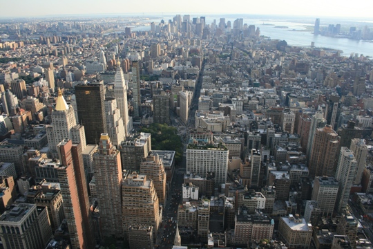 Nous descendons Manhattan en métro jusqu'à la 33ème rue pour monter sur le toit de la ville (en attendant la fin des travaux à Ground zero), l'Empire State Building. Il faut être patient pour atteindre le sommet, même aujourd'hui qu'il n'y a pas grand monde. Cela vaut le coup, le spectacle là-haut est exceptionnel surtout vers le sud. Nous descendons juste à temps pour faire quelques achats et trouver une paire de Converse en 11... Il est temps de rentrer à l'hôtel après une promenade de plus de 10 heures...