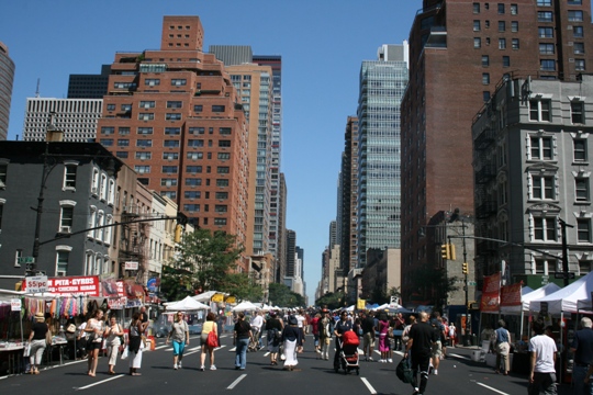 Comme hier, nous commençons par une belle promenade (4,2 km) au milieu des buildings. La 2ème avenue est fermée à la circulation pour un marché qui va de la 42ème à la 57ème rue. Le marché est secondaire, quel plaisir de remonter l'avenue sur la chaussée et d'admirer les immeubles. |