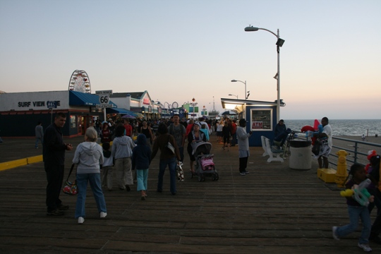 Le soir, nous nous sommes promenés à Santa Monica où le célèbre ponton géant s'avance dans la mer avec un mini-tivoli (parc d'attraction rétro). Nous avons diné italien (bon et cher celui-là) dans une rue très commerçante et très animée non loin de là, la 3ème rue. Nous dormons à Santa Monica dans un hôtel réservé par erreur...